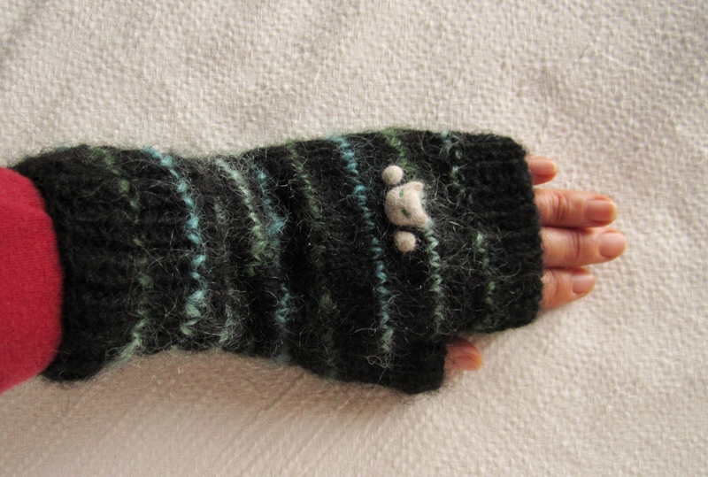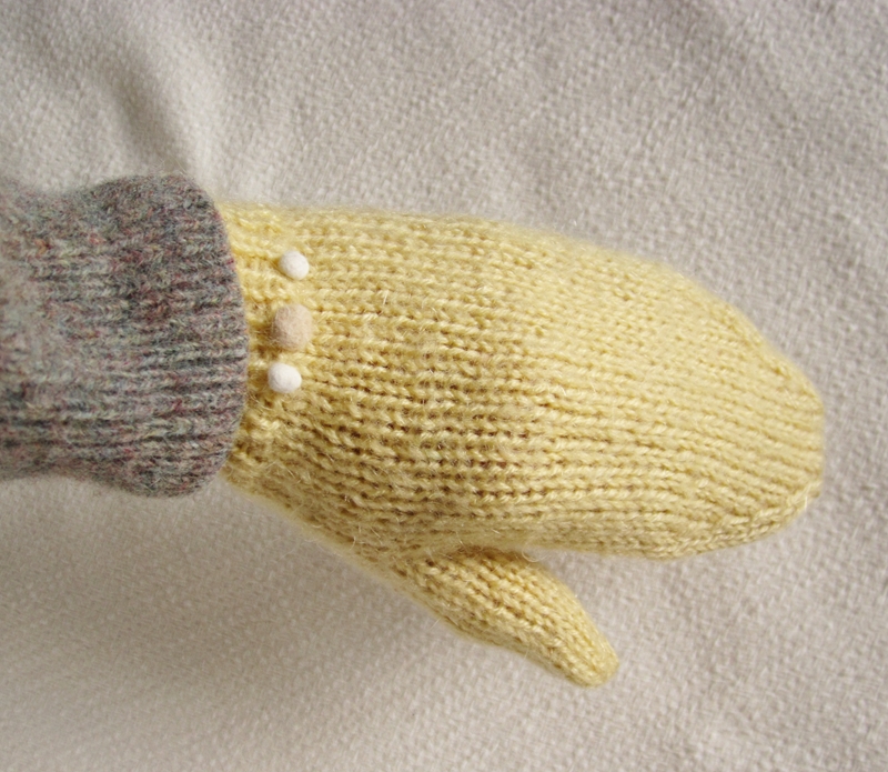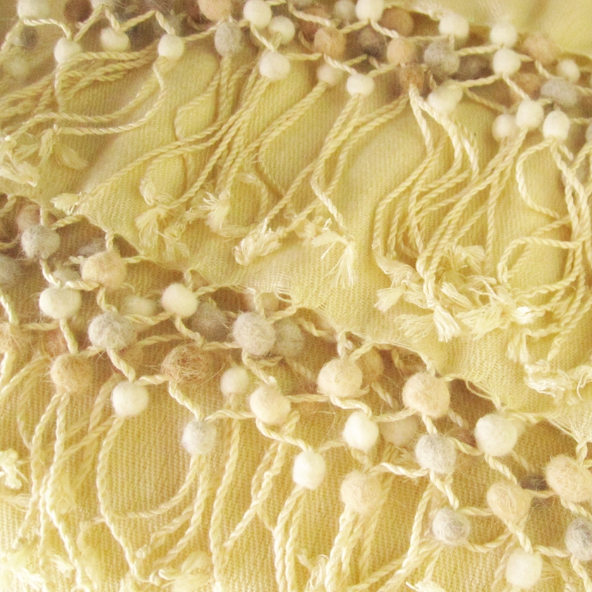 顔の近くに毛玉模様は可愛らしく見えすぎる、と感じられたら、裏返すと無地で使えます。
