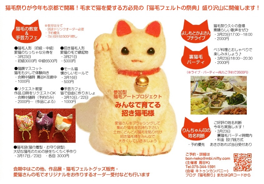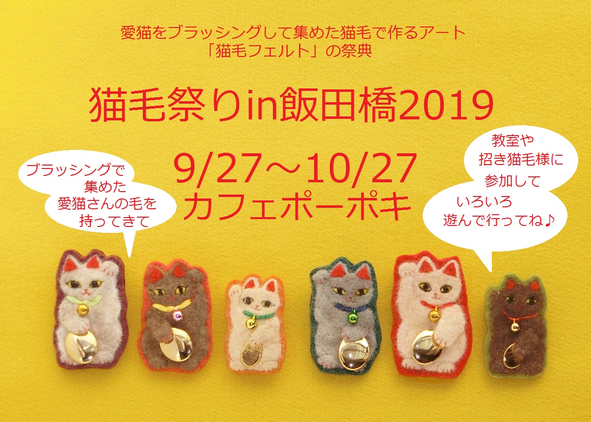 http://nekokematsuri.blog.shinobi.jp/nekoke-matsuri/iidabashi2019yokoku【予告】猫毛祭りin飯田橋2019 Cafe PoPoKiで9/27~10/27日開催!