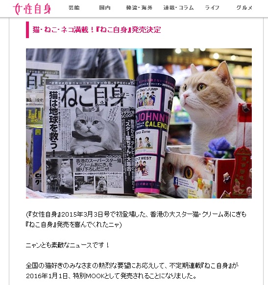 http://nekokematsuri.blog.shinobi.jp/media/%E3%80%8E%E5%A5%B3%E6%80%A7%E8%87%AA%E8%BA%AB%E3%80%8F%E7%89%B9%E5%88%A5mook%E3%80%8E%E3%81%AD%E3%81%93%E8%87%AA%E8%BA%AB%E3%80%8F%E3%81%AB%E7%8C%AB%E6%AF%9B%E3%81%8C%E6%B7%B7%E5%85%A5%E3%81%97%E3%81%BE%E3%81%99『女性自身』特別MOOK『ねこ自身』に猫毛が混入します