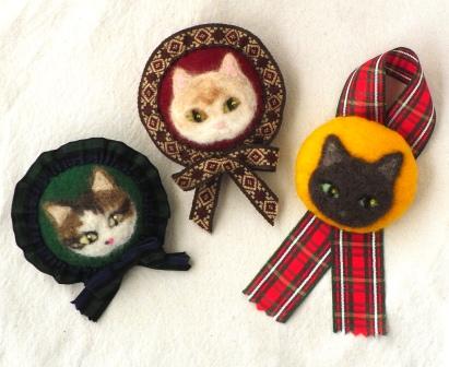 ロゼット風猫顔バッジ@猫毛フェルト川崎教室7月12日(土)