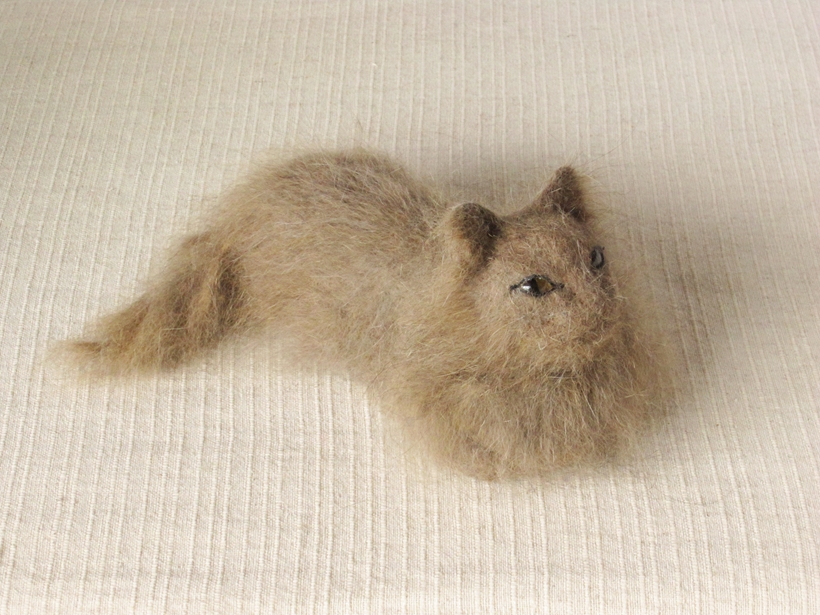 ブラッシングして集めた猫毛をお持ちください。後日、完成品をレターパックにてお届けします