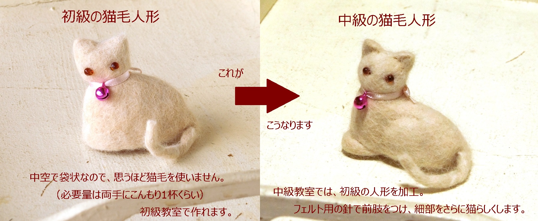 立体物を作るより少しの猫毛でOKなので「うちのコはブラッシング好きじゃなくて猫毛が集まらないの…」という方でも、愛猫とのコラボ作品が作れます♪