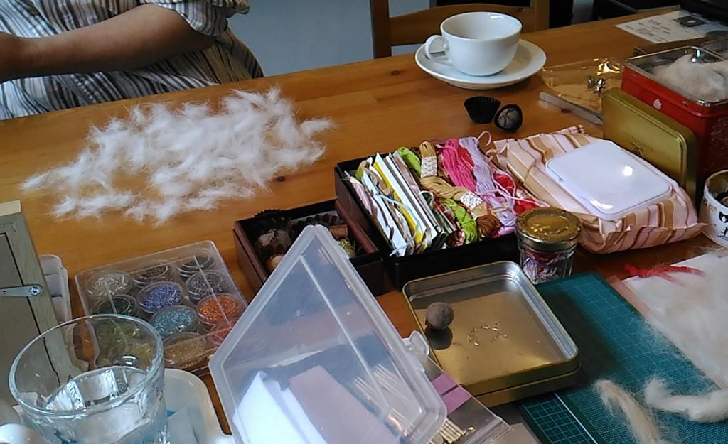 猫毛フェルトを作ってみたい方が集まって、お茶を飲みながら、それぞれ自由にお好みの作品を作れる「猫毛手芸カフェ」をいたします。