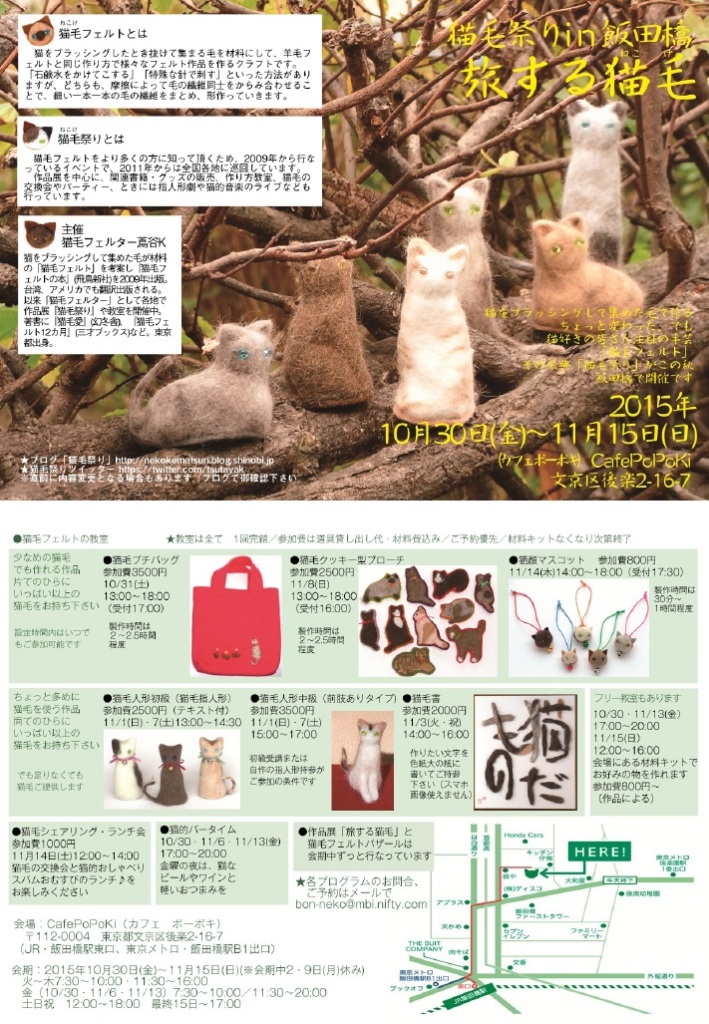 http://nekokematsuri.blog.shinobi.jp/7th/20150525猫毛フェルト作品展「続・旅する猫毛」&猫グッズバザール@ 猫毛祭りin川崎