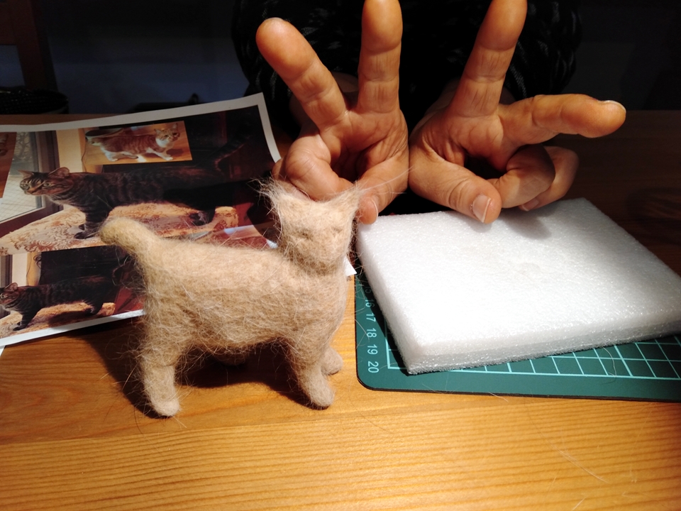 「モデル猫毛」のマンツーマン教室では、飼い主さんの「うちのこ、いつもこんな感じなの~!」という、愛猫さんらしい特徴的なポーズも、お写真があれば作れます。