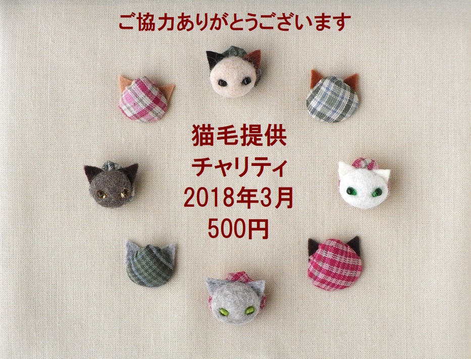 http://nekokematsuri.blog.shinobi.jp/charity/2018mar【猫毛チャリティ】2018年3月ご報告