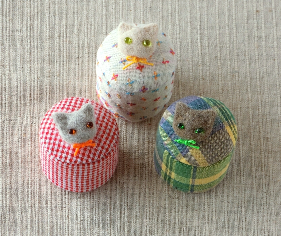 http://nekokematsuri.blog.shinobi.jp/ws/kyoto2018apr2教室作品「ちっちゃな猫顔つき小物入れ」のバリエーション