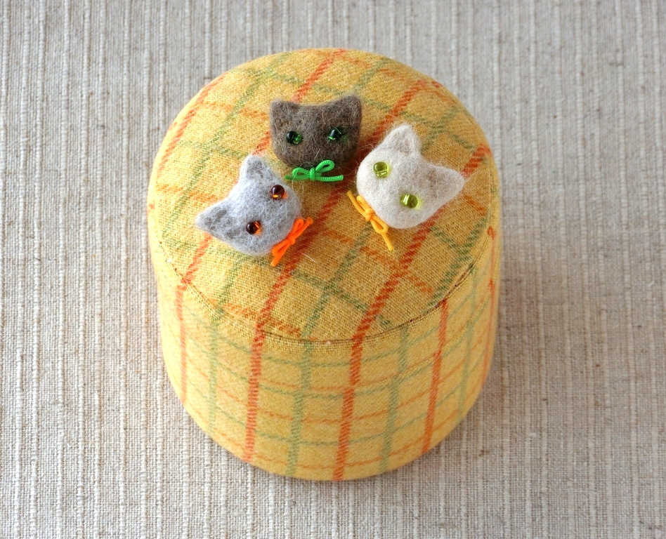 明日は「猫毛フェルト」京都定期教室、「ちっちゃな猫顔つき小物入れ」を作ります。