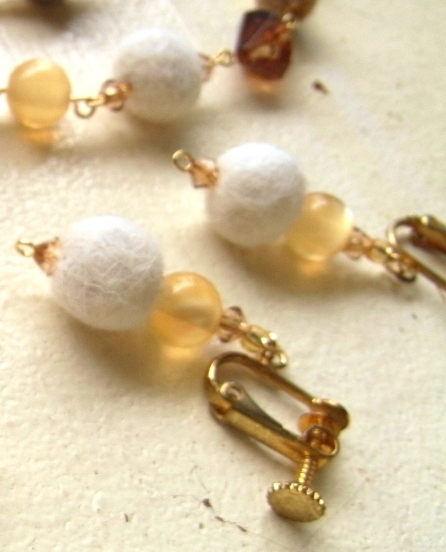 ◆猫毛ボールとビーズのピアス(またはイヤリング)