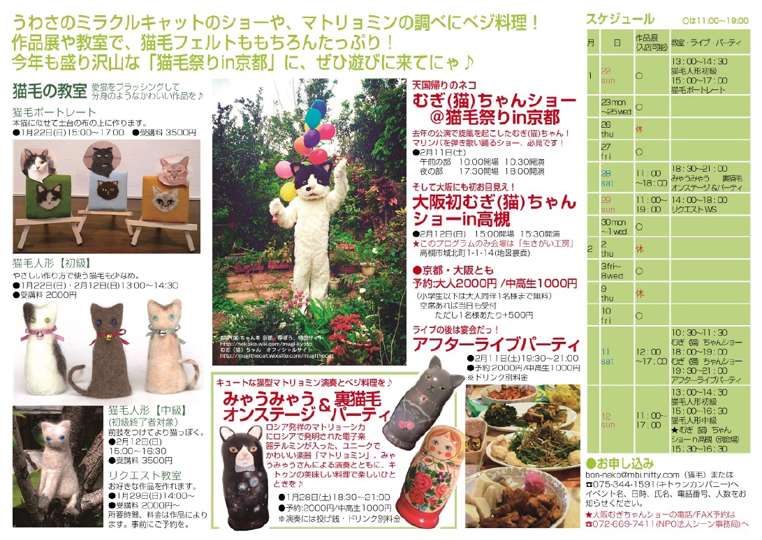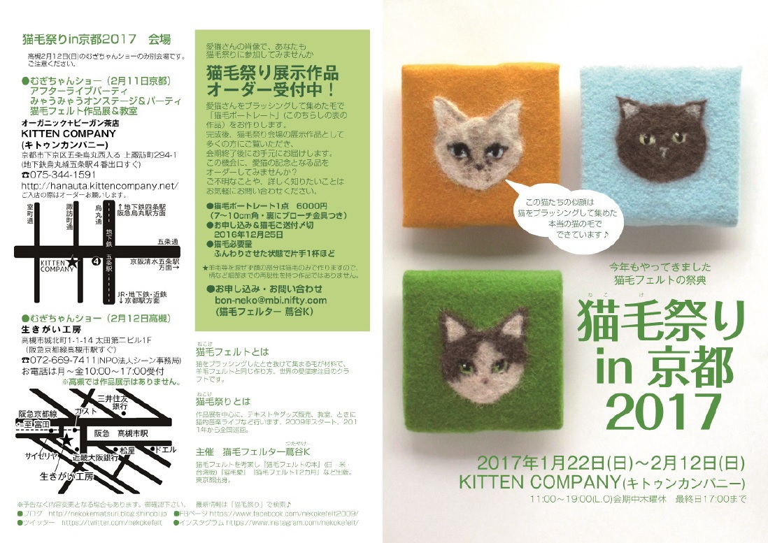 http://nekokematsuri.blog.shinobi.jp/nekoke-matsuri/matsuri-kyoto20172017年も猫毛は京都から!「猫毛祭りin京都2017」1月22日~2月12日開催
