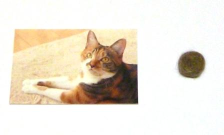 猫毛玉:直径1.5~3センチ程度に丸めたもの1個