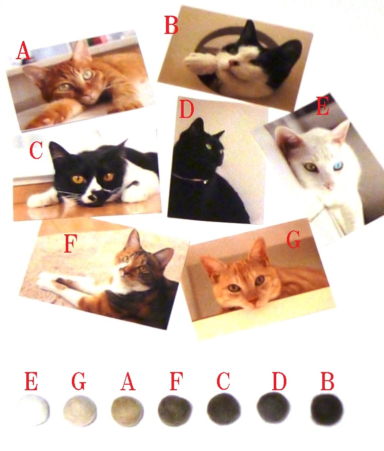 猫毛玉と猫の写真から、どれがどの猫の毛玉か正しい組み合わせを当てるクイズです。 猫毛玉と猫写真を送って出題にご参加を!もちろん、回答でもご参加ください。