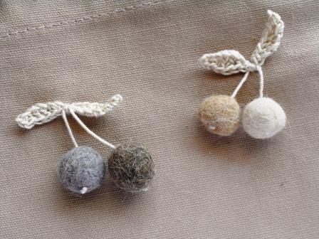 こちら、くるくる丸めた猫毛玉でナチュラルカラーのさくらんぼ