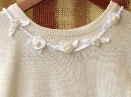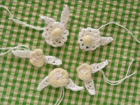 こんなふうに、かぎ針編みのレース糸と組み合わせると、夏にも活用できるモチーフに♪