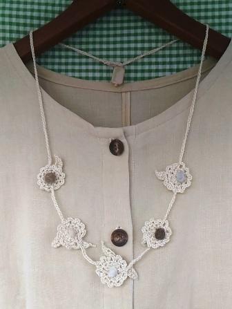 かぎ針でひもを編んで、ネックレスやラリエットにしてもカワイイです。