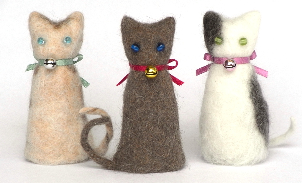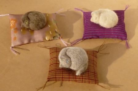 猫の毛のフェルト、猫をブラッシングした毛で作る「猫毛フェルト」ですが、猫毛という素材、結構何でも作れて、これまで発表しただけでも、いろんな作品があります。