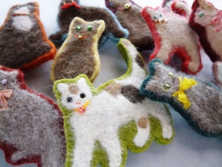 猫の毛のフェルト、猫をブラッシングして集めた毛で作る「猫毛フェルト」の教室です。現在開催中「猫毛祭りin太田」会場にて! 皆様お気軽においでください♪