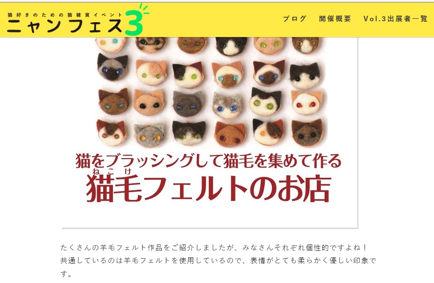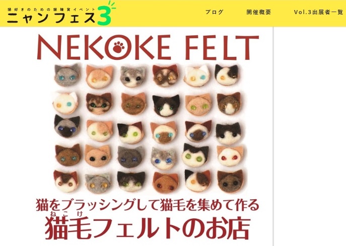 http://nekokematsuri.blog.shinobi.jp/goods/nyanfes34月10日はニャンフェス3に「猫毛フェルトのお店」混入!