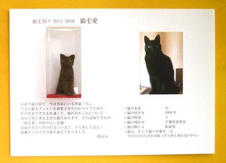 (2)実物:展示用紙(材料となった猫毛提供猫の写真貼付の上)