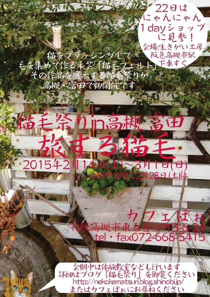 http://nekokematsuri.blog.shinobi.jp/nekoke-matsuri/2%E6%9C%88%E3%80%81%E3%82%AB%E3%83%95%E3%82%A7%E3%81%BD%E3%81%89%E3%81%AB%E3%81%A6%E9%96%8B%E5%82%AC%EF%BC%81%20%E7%8C%AB%E6%AF%9B%E7%A5%AD%E3%82%8Ain%E9%AB%98%E6%A7%BB%E3%83%BB%E5%AF%8C%E7%94%B02月、カフェぽぉにて開催! 猫毛祭りin高槻・富田
