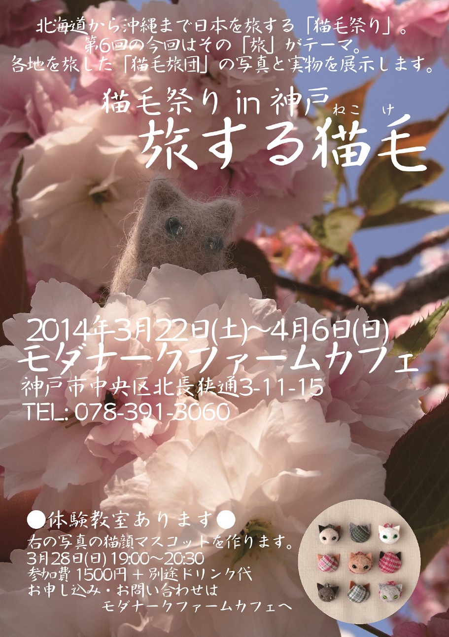 http://nekokematsuri.blog.shinobi.jp/6th/%E6%98%A5%E3%81%AE%E7%A5%9E%E6%88%B8%E3%81%AB%E3%81%8A%E9%82%AA%E9%AD%94%E3%81%97%E3%81%BE%E3%81%99%EF%BC%81%E7%AC%AC6%E5%9B%9E%E7%8C%AB%E6%AF%9B%E7%A5%AD%E3%82%8A%E3%80%8C%E6%97%85%E3%81%99%E3%82%8B%E7%8C%AB%E6%AF%9B%E3%80%8Din%20%E7%A5%9E%E6%88%B8春の神戸にお邪魔します!第6回猫毛祭り「旅する猫毛」in 神戸