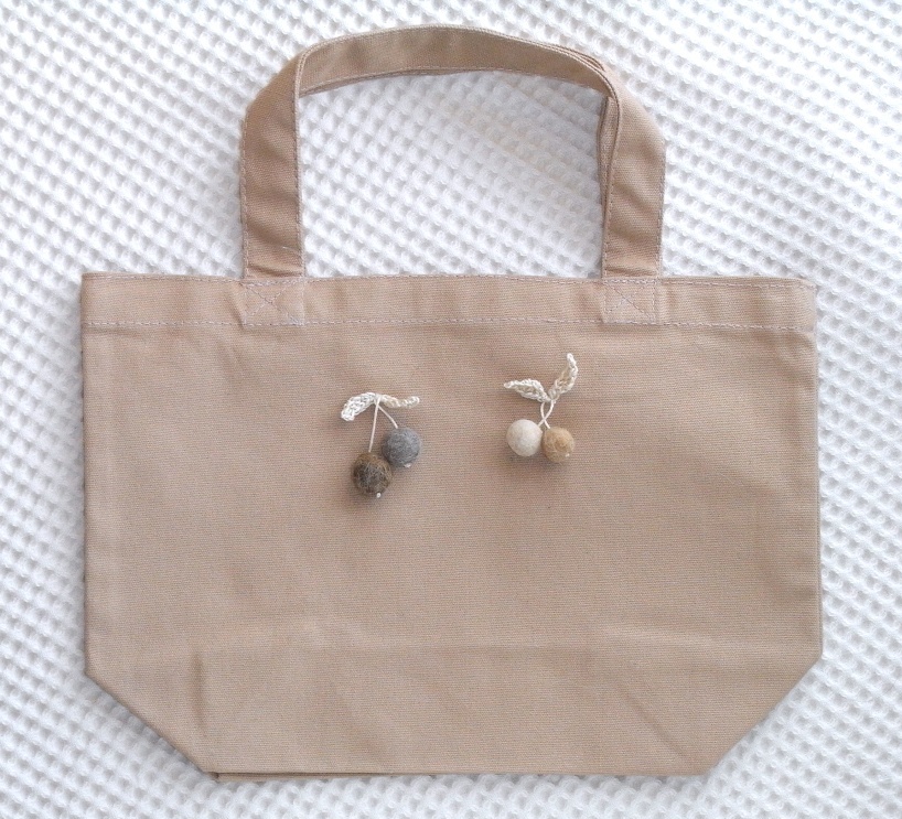 猫毛さくらんぼ付きミニトートバッグ