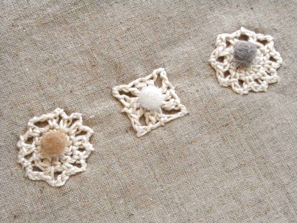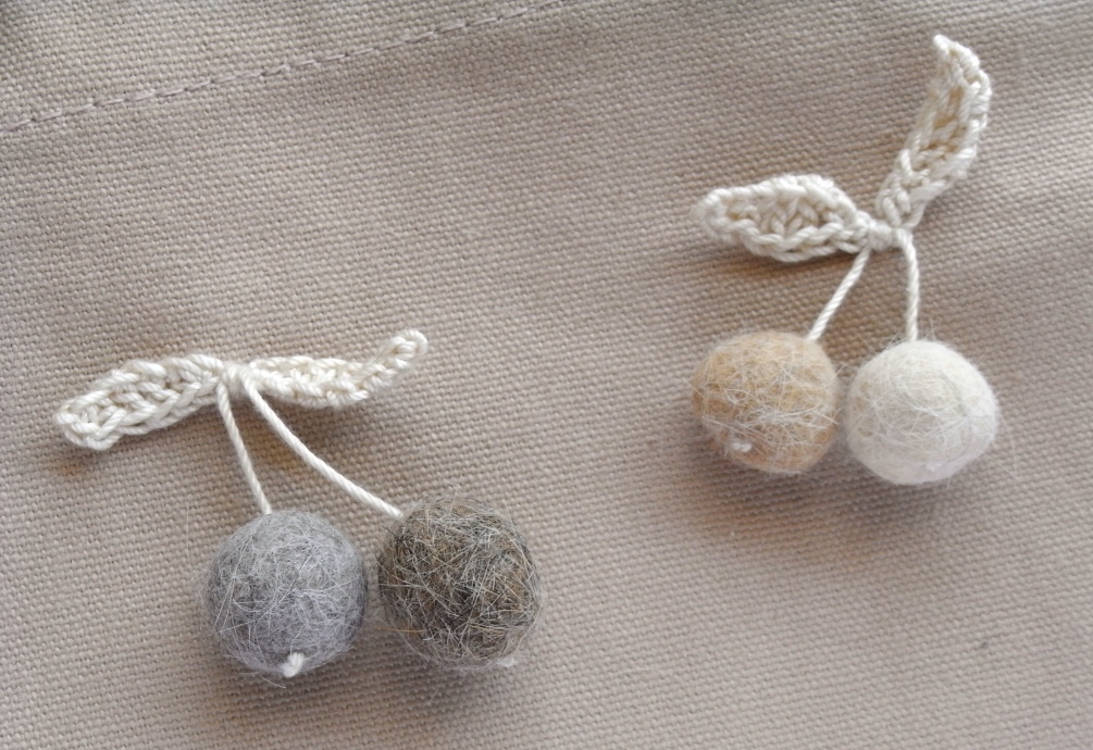 『猫毛フェルト12カ月』の9月の作品である「ぎんなん猫」を発展させ、ぎんなんの代わりに、ちりめんでくるんだしじみの殻を使っています。そんなわけで後頭部は華やか♪