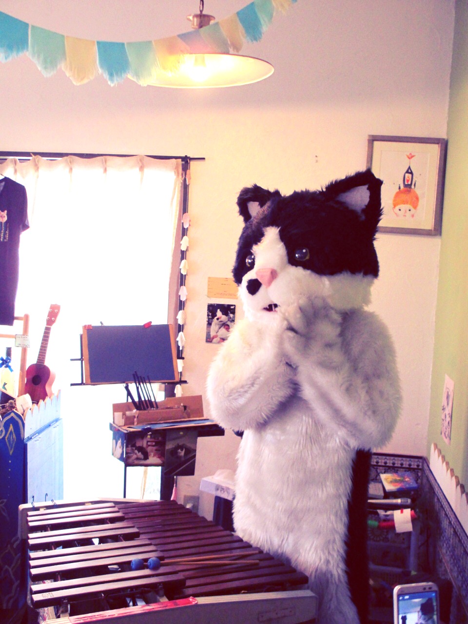 今年2月、キトゥンカンパニーさんでのイノチコア主催「ねこと原発」展のとき、オープニングパーティで「黒猫少女隊」として登場なさってます。