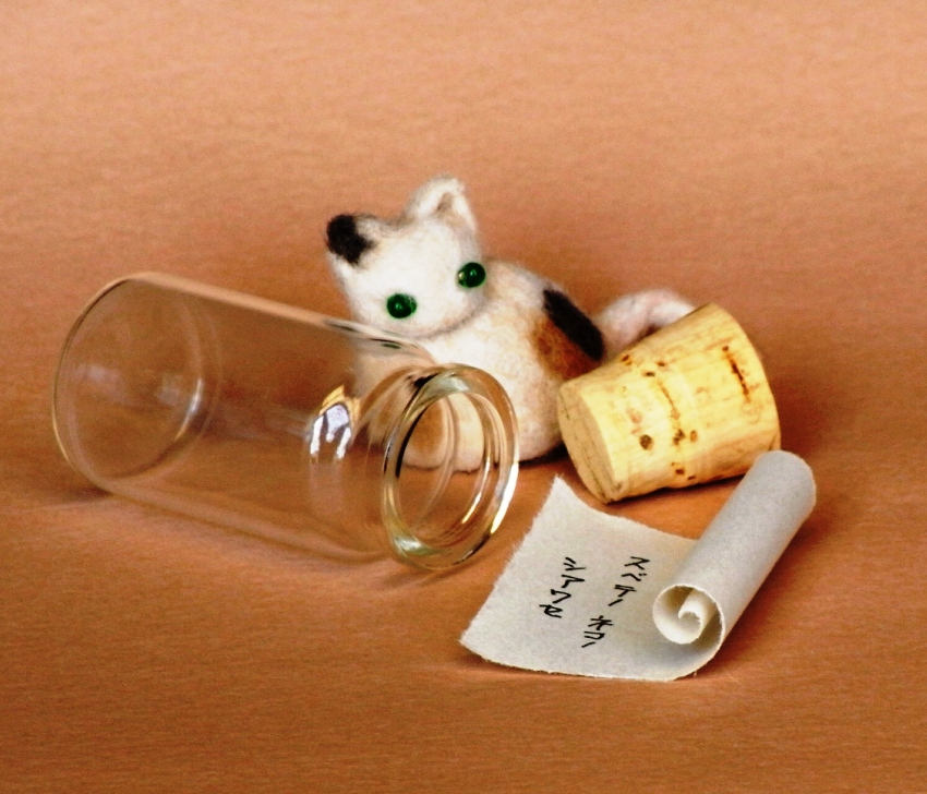 今回は、びん詰めになった猫毛の世界をご覧あれ。