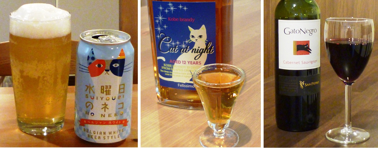 水曜日のネコ(ビール)、ガタオ・ネグロ(ワイン)、Cat at night(ブランデー)などなど。