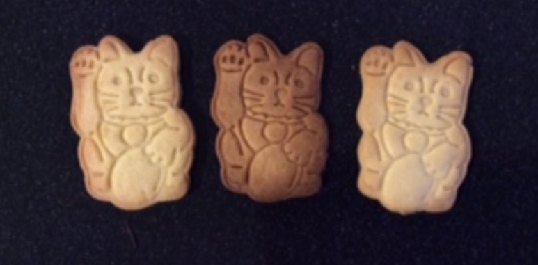 飯田橋会場のCafePoPoKi店主様にもお願いしましたら、なんとも愛嬌のある表情の招き猫型を見つけてくださり、作ってくださいましたよ、招き猫クッキー!