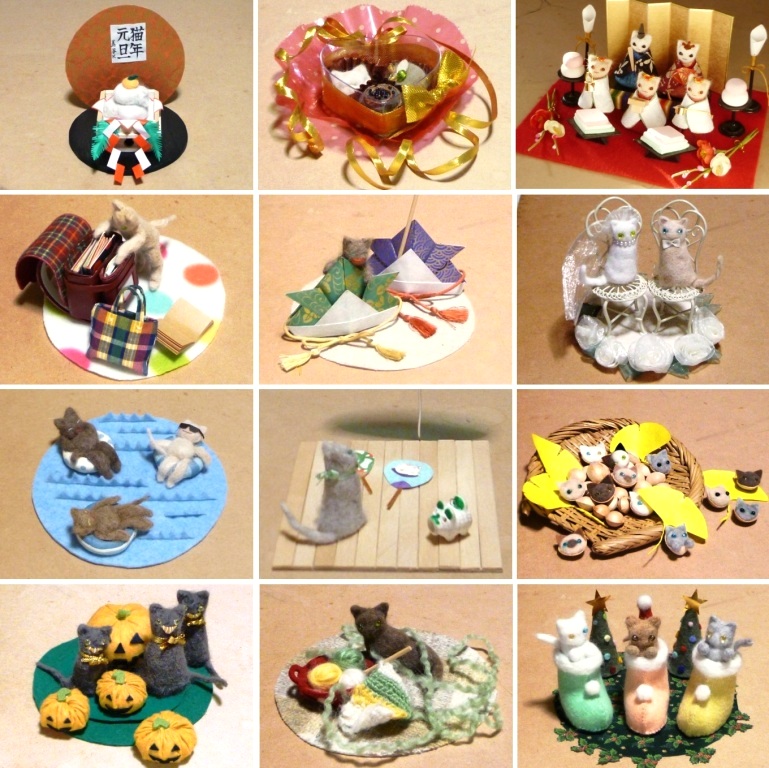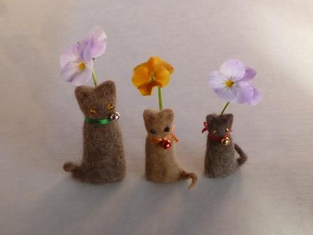 猫の毛のフェルト、猫をブラッシングした毛で作る「猫毛フェルト」ですが、猫毛という素材、結構何でも作れて、これまで発表しただけでも、いろんな作品があります。