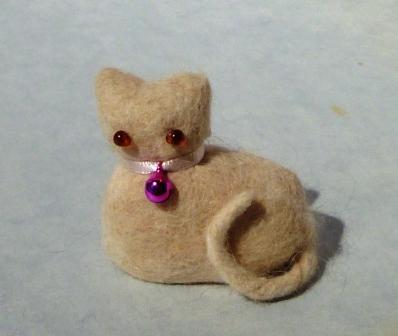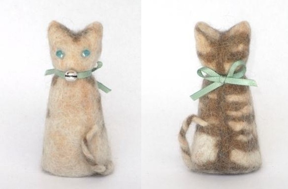 猫をブラッシングして集めた毛で作る猫毛フェルトの人形の中級は、初級とは別の技法「フェルティングニードル」を使って、初級で作った人形を材料に加工し、より猫らしい姿の人形を作ります。