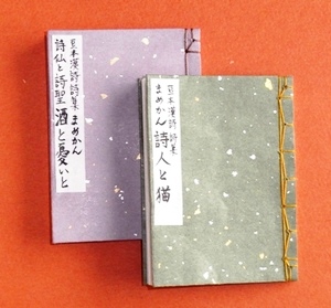 大好きな漢詩を豆本に。『詩人と猫』は陸游、『酒と憂いと』は李白と杜甫の作品を収めました。和綴じの基本をマスターできます。