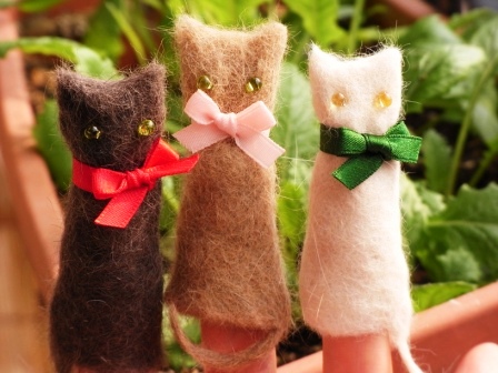 こちらは、キャットシッターのパイオニア「猫の森」の南里秀子さんのところでワークショップさせていただいたのと同じもの、『もっと猫毛フェルトの本』に載せている作品です。リクエストいただき、京都でもWSをすることにいたしました。
