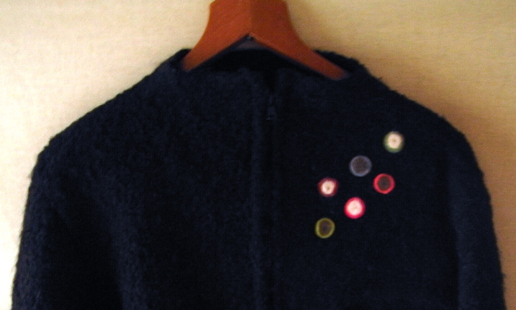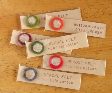 大きさと形がボタンっぽいので「穴なしボタン」と呼んでいますが、バッジみたいにしたり、模様みたいに縫い付けたりもできます。