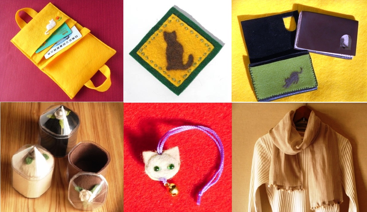 この作品以外にも、ちりめん猫などのキットご用意しております。手ぶらでご参加いただけますが、愛猫の毛を使いたい方はお持ちくださいね。