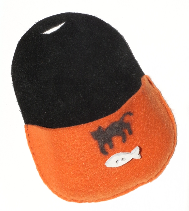 カラフルな土台の部分は厚手のウールフェルト。そこに猫毛をちくちくフェルティングしたものです。