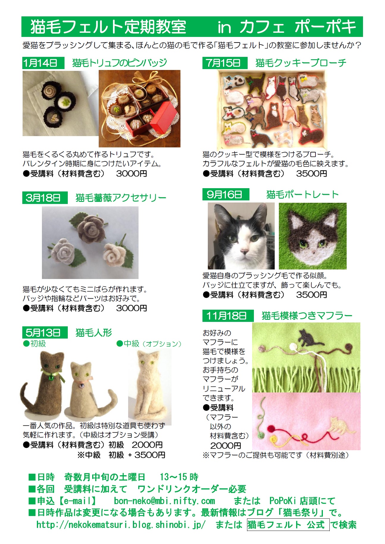 単発参加可能!猫毛フェルトの飯田橋定期教室、2017年スケジュールです